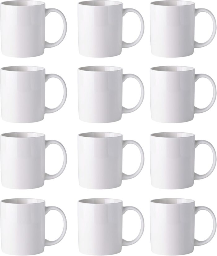12 OZ Off White Coffee Mugs, Ceramic Coffee Mugs with Large Handle for Man, Woman, Light Weight Coffee Mugs Set of 12 for Latte/Cappuccino/Cocoa/Milk, Dishwasher & Microwave Safe
