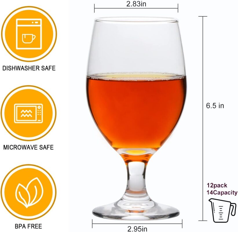 12 Pack Goblet Party Glasses, 13-Ounce Classic Beverage Glass Juice Glasses, Clear
