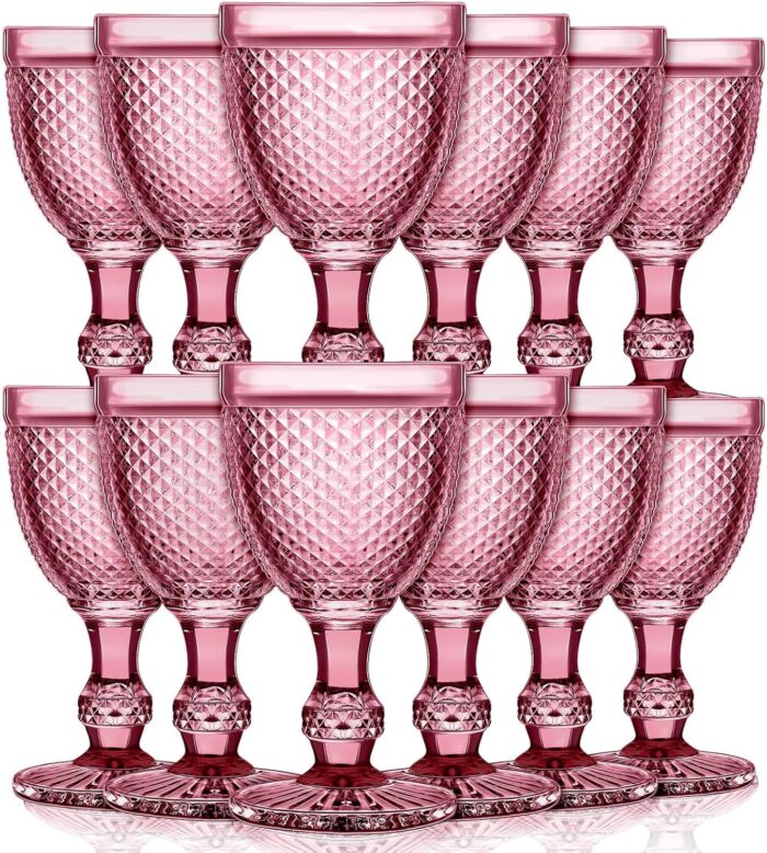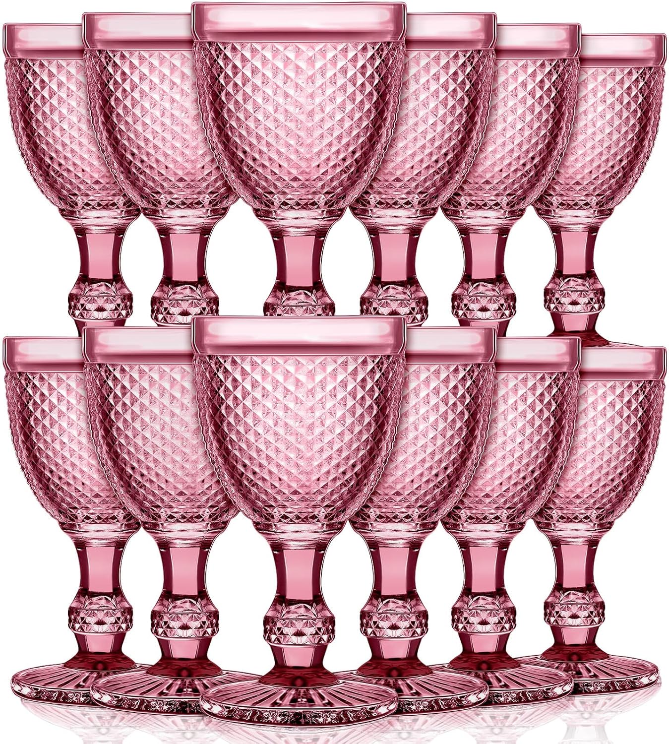 - 12 Pieces Set: the set contains 12 pieces of red wine goblets with diamond design and reliable quality, and with a capacity of approx. 10 oz; Classic goblet design makes it suitable for most formal and stylish activities, such as weddings, dinners, parties and other major events or occasions; Note: Hand wash only, not dishwasher safe