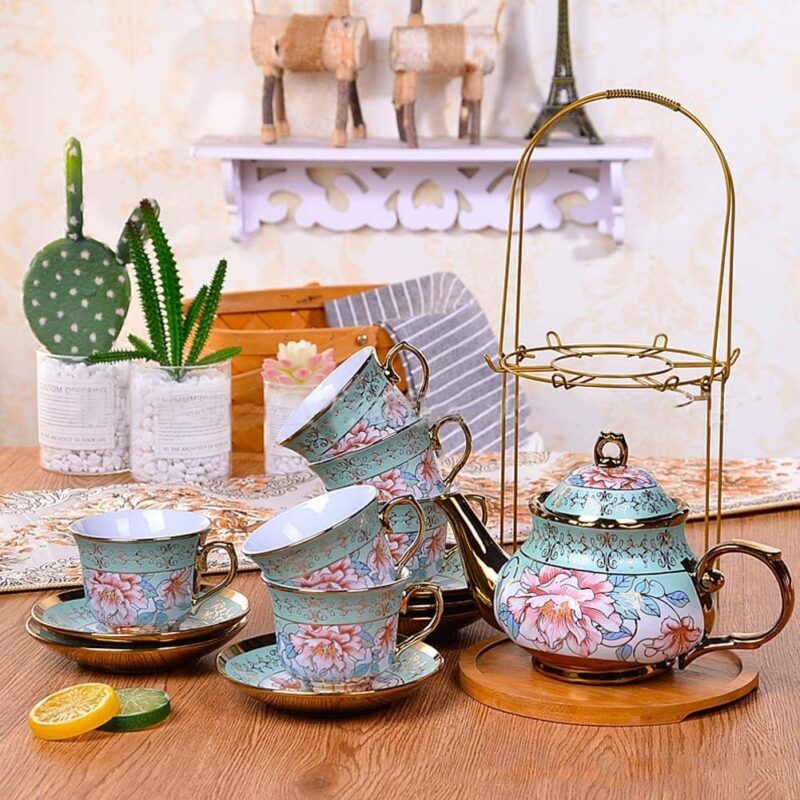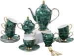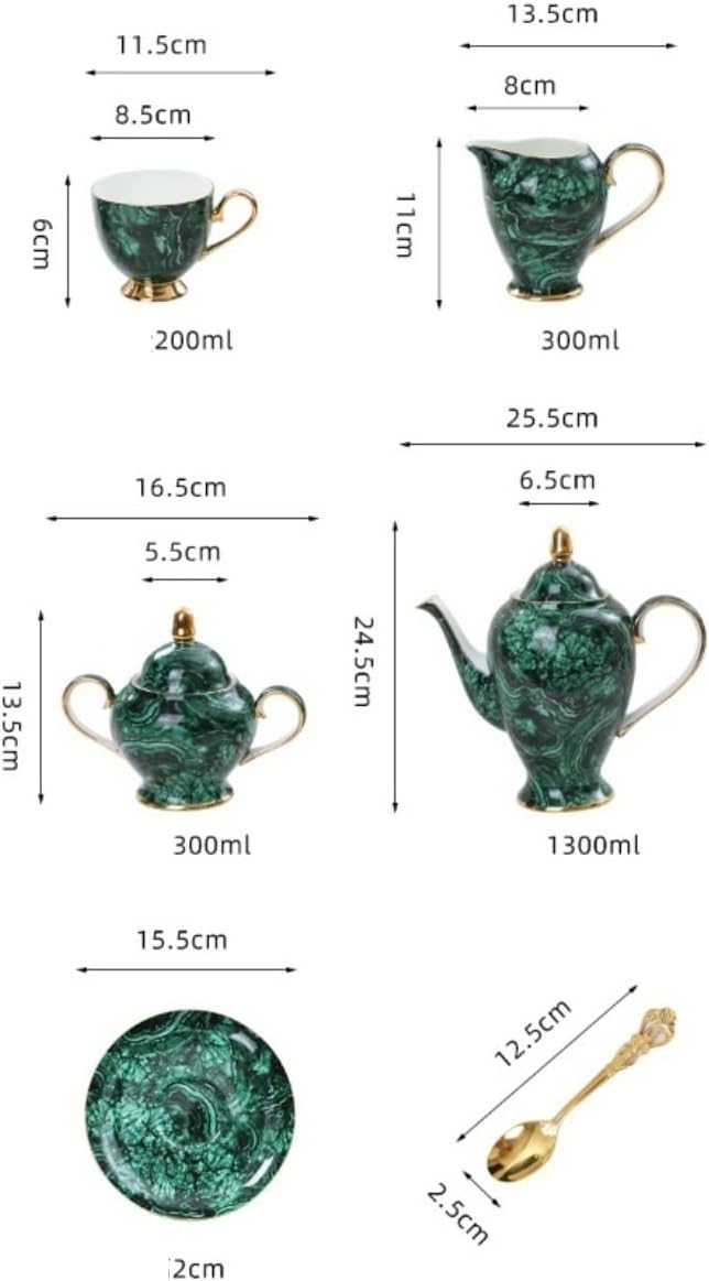 Tea Set Tea Cups Teapot Set 21 Piece Ceramics Tea Set for 6-Person Home Sugar Bowl Milk Kettles European Bone China Teaware Tea and Coffee Set Tea Cup Set Tea Pot Set Coffee Cup Set (Green 21pcs)