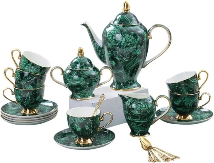 20 PCS Ceramics Afternoon Tea Set Adult Gift Can Drink Coffee Strong Tea green
