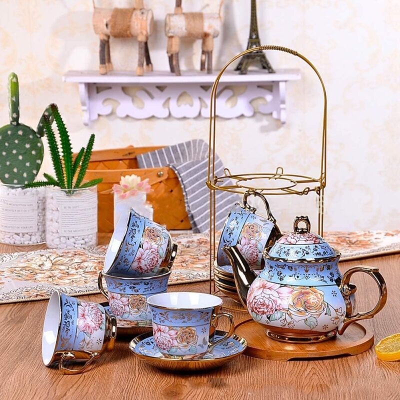 20 PCS Tea set Ceramics Tea set Afternoon Tea Set Adult tea set Gift Tea Set Can Drink Coffee Strong Tea blue
